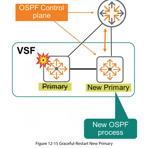 In the case of a failure and the Secondary becoming the Master, OSPF notifies peers of the event. This triggers a rebuild of OSPF adjacencies. During the convergence the switch continues to route traffic based on the last known routing information. This typically only lasts a few seconds. After OSPF is fully operational routing uses the new information.
