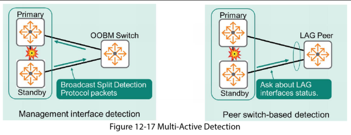 In this method you connect Out-Of-Band Management (OOBM) interfaces to primary and secondary stack members. These interfaces must be in the same Layer-2 broadcast domain (VLAN). Each member broadcasts Split Detection Protocol Packets to identify stack fragments that are currently operational.