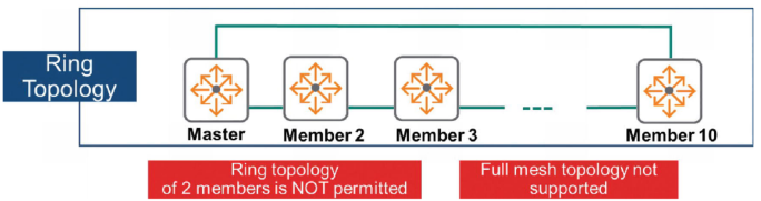 Stacking technology allows you to manage a group of devices as a single device, a virtual switch. Control and Management plane functions are centralised in one group member, but each member runs its own independent data plane.