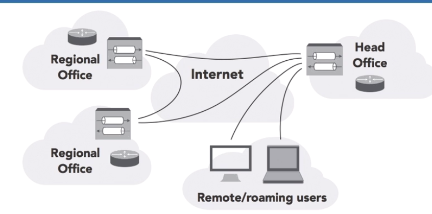 - End User VPN: this allows mobile workers to securely connect form remote locations to the organisations network.