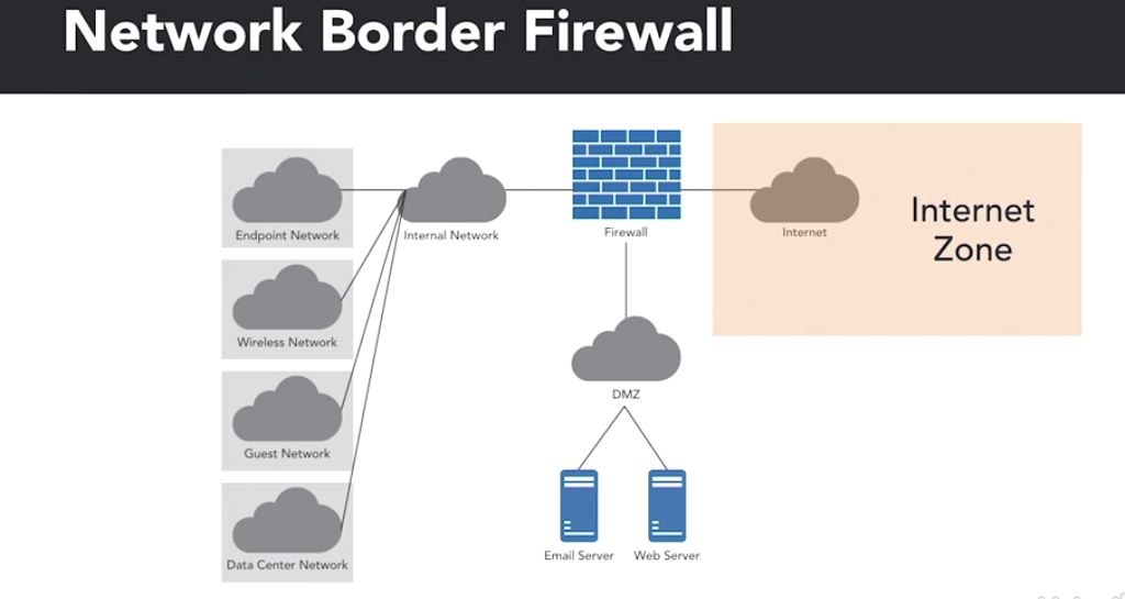 A network can be split up into different security zones. typically a boarder firewall will have 3 interfaces connecting to these different zones: