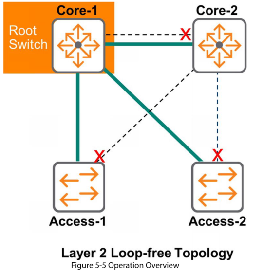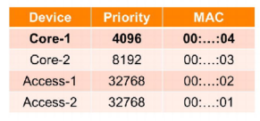 - Lowest root Bridge ID: all devices agree that Core 1 is the Root switch. This does not help to select the best path