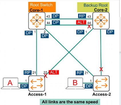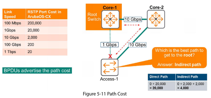 RSTP may have several possible paths to get from route switch to a particular non-root switch. It chooses the best path based on coast, which is based on link speed.