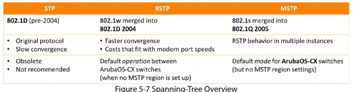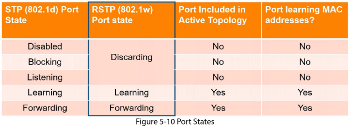 The table below lists the states were used in the original STP (802.1d) and the RSTP (802.1w) and compares them