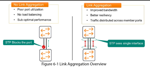 Without link aggregation, if you used two links to connect two switches together, the two links would create a loop and STP would automatically block one of the ports.