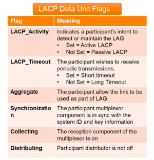 The standard used to implement this is Link Aggregation Control Protocol. LACP exchanges periodic messages called LACP Data Units. These messages include: