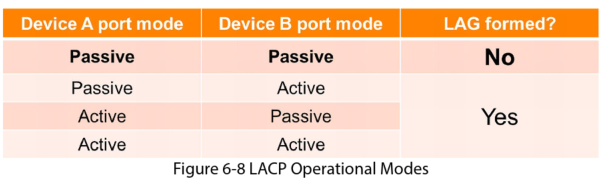 In this mode the device actively transmits LACP Data Units over its member ports saying “Hey lets form a LAG”. Whether the peer is in Passive or Active mode it responds, negotiation continues, and the AG is successfully formed.